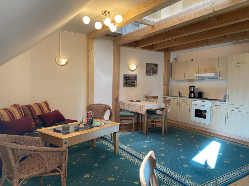 Die Ferienwohnung Der Wohn- und Küchenbereich ist hell und geräumig.